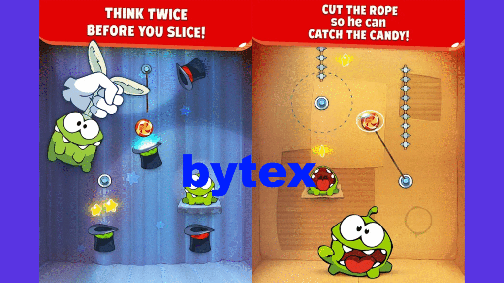 یہ گیم دماغی مشق کا بہترین ذریعہ ہے۔ ہر لیول میں مختلف انداز کی رسیاں، باؤنسی بلب، اور فزکس پر مبنی رکاوٹیں آتی ہیں جنہیں سمجھداری سے کاٹ کر Om Nom کو کینڈی کھلانی ہوتی ہے۔